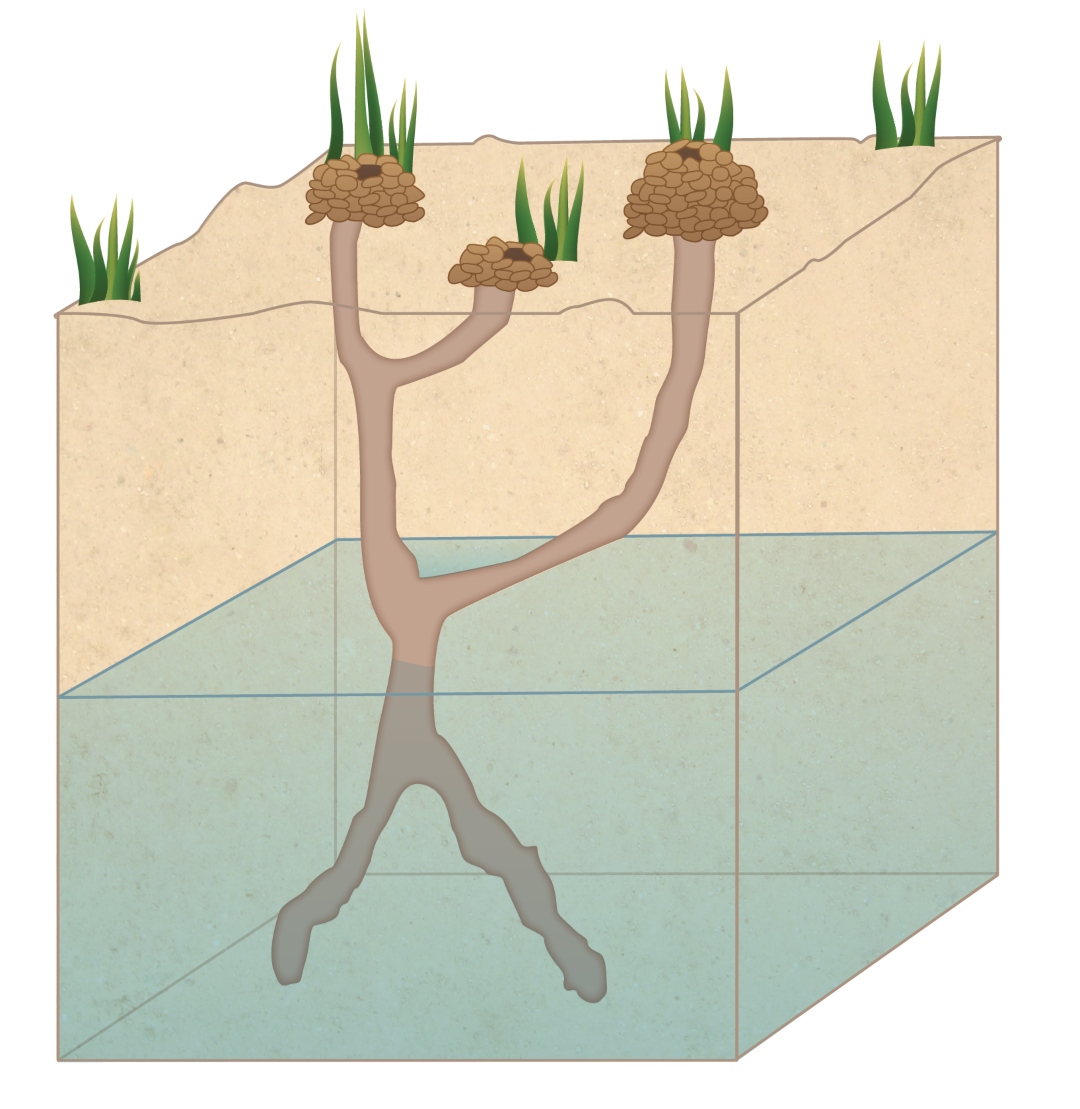Existem mais de 700 espécies de lagostins no mundo, das quais a maioria constrói tocas rudimentares em corpos d’água superficiais permanentes. Outras, porém, dependem da escavação de tocas semi-terrestres complexas que alcançam águas subterrâneas. Essas estruturas podem chegar a vários metros de profundidade e criam um ambiente controlado e estável, habitado pelos animais durante a maior parte da vida.